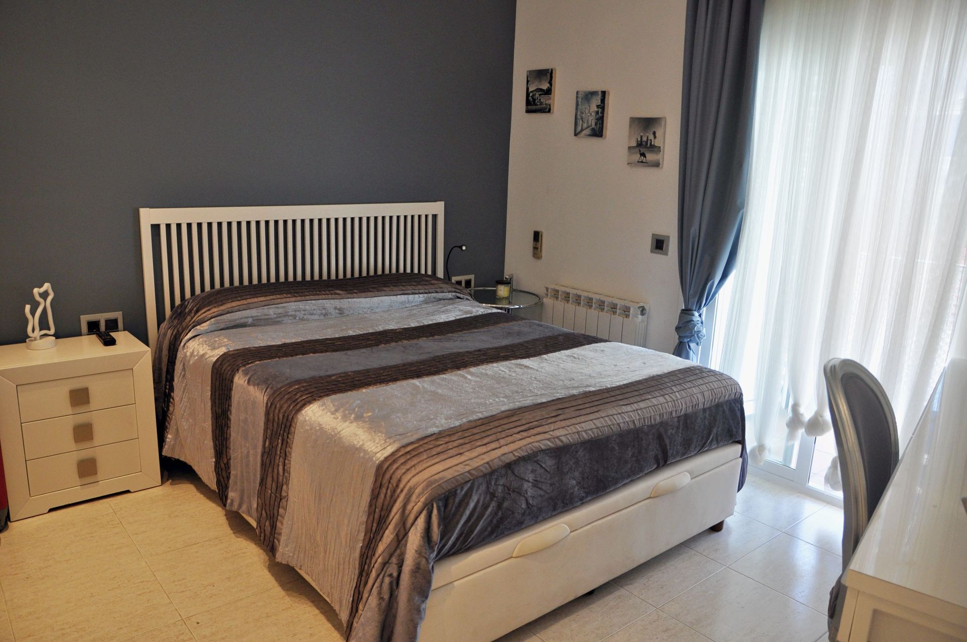 Available this nice and modern apartment only 100 m away from Balmins beach in Sitges. The accommodation have 3 rooms: one main room with queen size bed, another with two single beds and a little room with a little bed (stuff store). The apartment is located at 10' away from the railway station, very near of Sitges center.