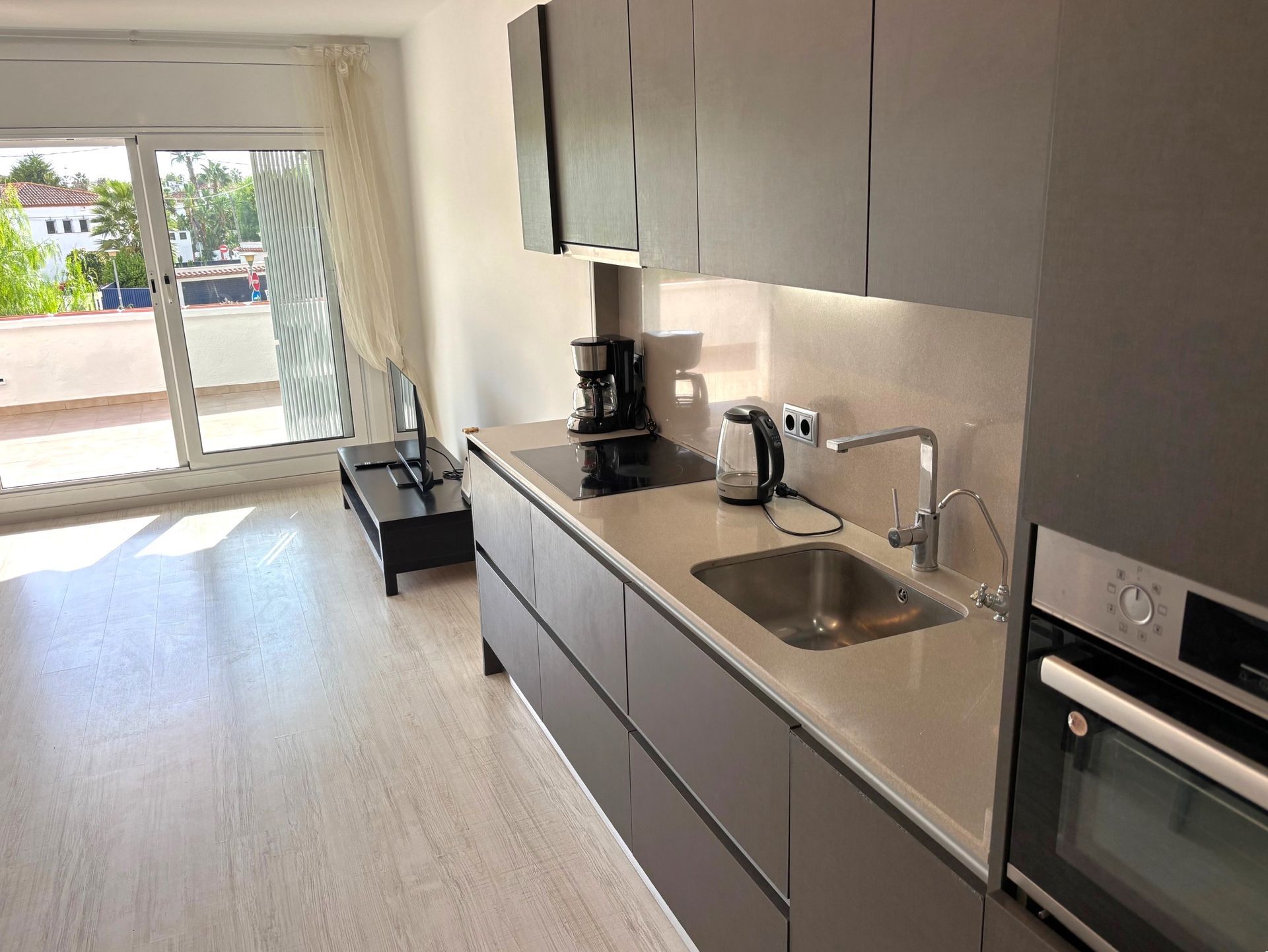 Short-term rental (September to June) in one of the best areas of Sitges. Apartment in the Vinyet area, very close to Avenida Sofía and five minutes from the seafront and downtown Sitges. Parking included. It has approximately 75 m2 distributed in an open-plan living room and kitchen and three bedrooms, one of which is a suite with a full bathroom inside. A large 16 m2 terrace overlooks a magnificent garden area. A very quiet community with a tennis court and bike parking. It can be rented furnished or unfurnished. Equipped with a dishwasher, oven, refrigerator, washing machine, and dryer.