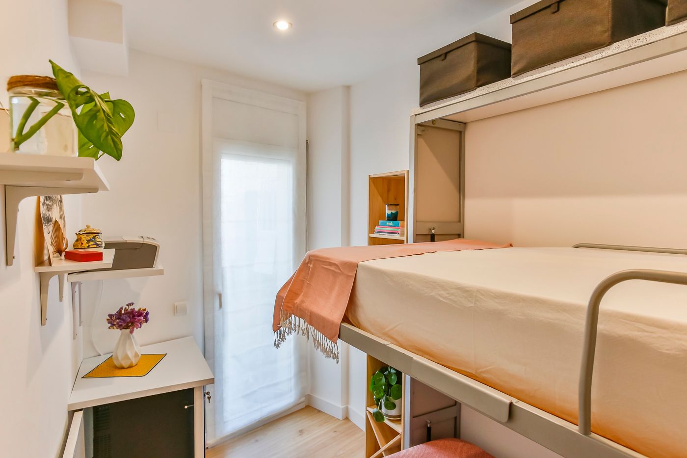 Bonito y reformado apartamento de dos habitaciones en Sitges para estancias temporales (octubre a junio), muy cerca del centro y de la playa. El apartamento cuenta con un elegante y soleado salón, una habitación principal y otra con dos literas individuales. Ubicado en una zona muy tranquila de Sitges, a solo 10 minutos a pie del centro y de todos los servicios. La estación de tren y autobús están también muy cerca. Wi-fi muy rápido y un par de espacios de trabajo muy cómodos.